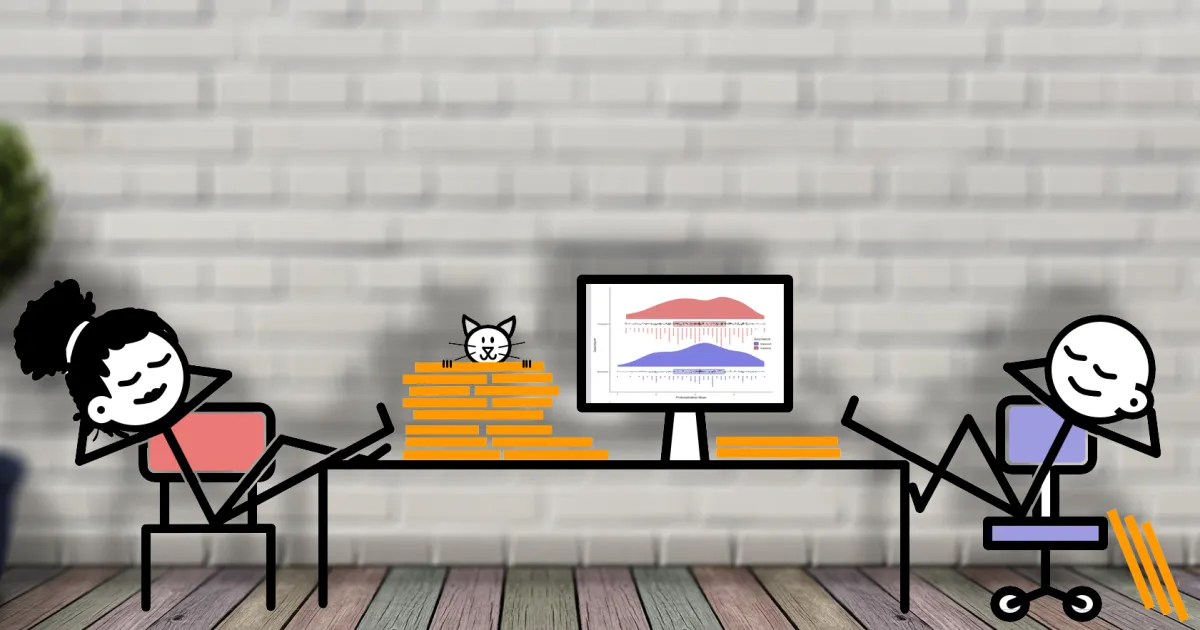Die Arbeit verwendet auch einen Raincloud Plot für die Darstellung der Verteilung der Prokrastination bei Männern und bei Frauen. Hier das Ergebnis und der Link auf den Codeauszug aus R, damit man solche Plots erstellen kann.
